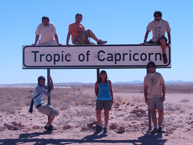 La siguiente parada es en el cartel que marca la situación del trópico de Capricornio.