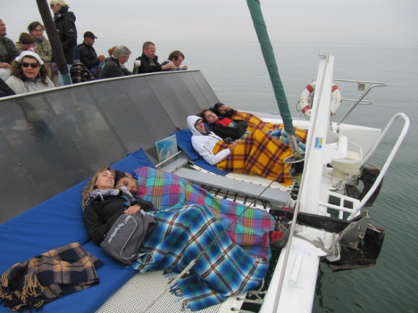 Casi llegando a puerto, una francesa se sienta en una escalerilla para fumarse un cigarro y de repente una foca se sube a bordo cayendo sobre la susodicha. Momentos de confusión porque la tripulación no sabe a quién le tiene que lanzar el pescado, ya que el parecido es sorprendente.