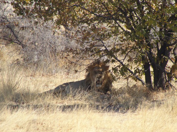 Día completo recorriendo Ethosa, circulando por caminos de tierra y parando en diferentes charcas para ver animales de todas clases: cebras, jirafas, ñus, elefantes, orix, kudus, springboks y un leopardo. Aunque la sorpresa del día llegó al encontrarnoss una jirafa muerta en medio de un camino, y al lado, debajo de un árbol, dos leones echando la siesta después de semejante festín.