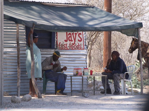 Continuamos con nuestro camino hacia Sudáfrica, pero antes de salir de Botswana nos detenemos en un poblado para regalar nuestras cosas: comida, cacharros de cocina, hornillos, bombonas, ropa, zapatillas, esterillas, etc. que esperamos sirvan de utilidad a sus nuevos dueños.